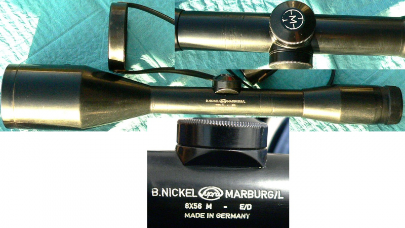 Sie bieten hier auf ein älteres ZF 8 x 56 der Firma B. Nickel aus Marburg a.d. Lahn.