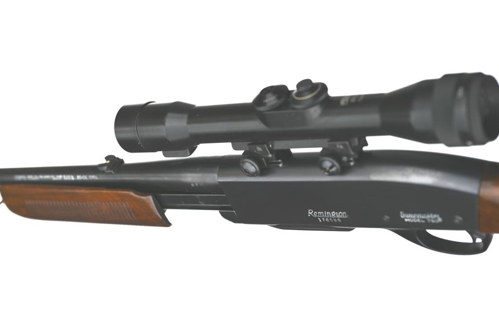 Herstellerschriftzug "Remington", Modellbezeichnung "760 Gamemaster" , Seriennummer, mehrere Beschusszeichen, Kaliberangabe ".30-06 SPRG.", Gefahr- und Patenthinweise.