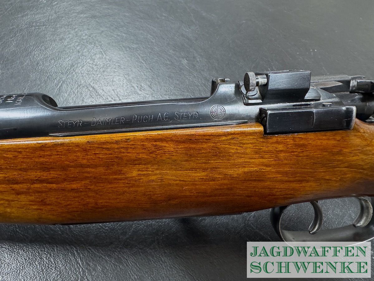 Vermutlich handelt es sich um einen originalen Mannlicher Schönauer M1903 oder 1907 der 1950 von der Firma Steyr restauriert und mit dem neuen Firmen Namen Steyr Daimler Puch versehen wurde.