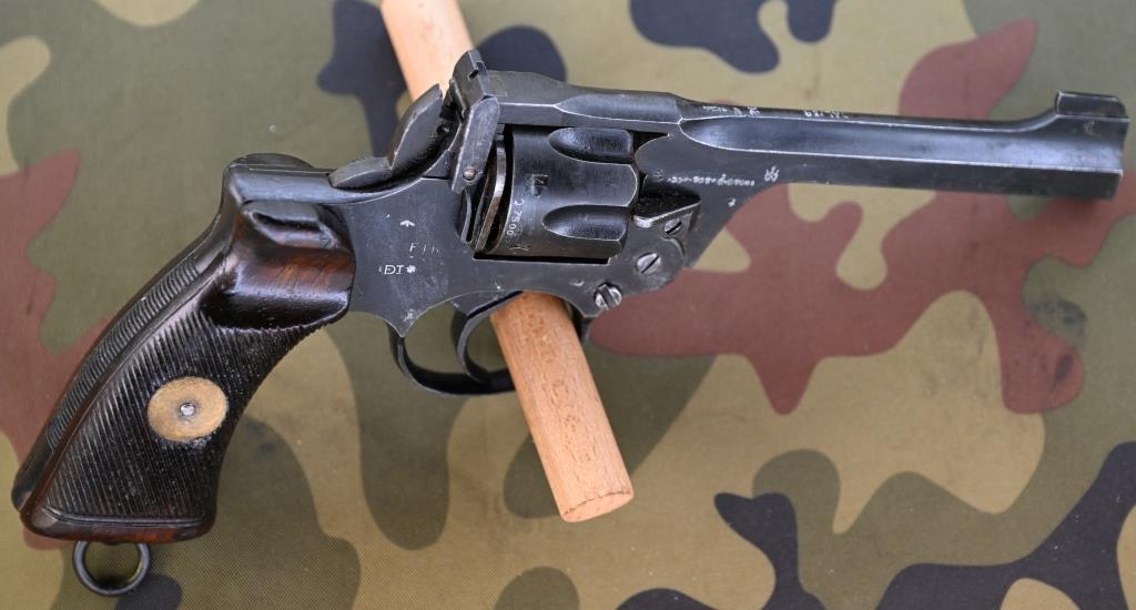Schwere Qualität aus der Vorkriegszeit, interessant für Sammler von alliierter Militärbewaffnung und Ordonnanzrevolvern.
