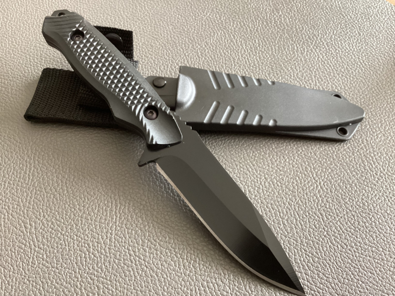Full-Tang Messer, kpl. schwarz - ideal für Camping, Angeln, Bushcraft.