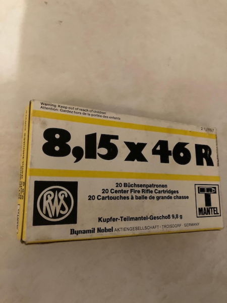 Biete hier 19 Schuss original RWS Kupfer-Teilmantel im Kaliber 8,15x46R an.