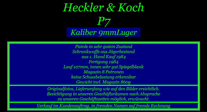 Artikel-ID: 20171311 ArtikelNr. des Verkäufers: 12242 Kategorie: Grosskaliber Kurzwaffen > Gebrauchspistolen > Heckler & Koch