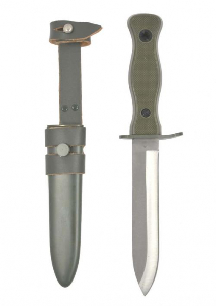 - Metallscheide mit Gürtelschlaufe und Griffhalteband aus Leder