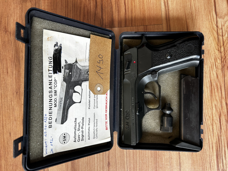 Die Schreckschusswaffe ist etwas in die Jahre gekommen, sieht aber noch sehr gut aus. Hat normale Gebrauchsspuren und leichte Verschmutzungen, funktioniert aber einwandfrei.