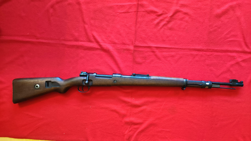 Wir bieten einen Karabiner Mauser 98, Kaliber 8 x 57 IS. Der Karabiner wurde 1937 von Mauser gefertigt. Allem Anschein nach wurde aus dem Gewehr nie ein Schuss abgegeben. Alle Metallteile sind hochglanzpoliert und tiefschwarz brüniert. Auch der Schaft ist makellos. Alle Metallteile und auch Holzteile sind WAA gestempelt.