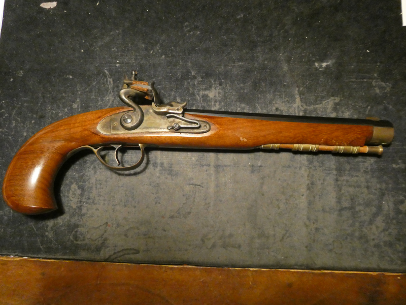 Verkaufe für einen Bekannten eine Steinschlosspistole , Made in Italy, Mod. Kentucky Jäger im Kal. .44 BP. Die Pistole hieng nur an der Wand und wurde, so wie sie aussieht, nicht geschossen. Lediglich minimale Lagerspuren vorhanden. Die Funktion ist natürlich gegeben.Da die Zündung über das Steinschloss erfolgt ist die Waffe frei ab 18 Jahren erwerbbar. Privatverkauf deshalb keine Rücknahme oder Garantie möglich.