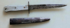 Grabendolch wahrscheinlich Deutsch, vor 45, Griffschalen sind aus Alu, Auf der Klinge ist ein Zeichen, auf der Griffschale auch, die Scheide ist magnetisch, die Scheide hat so einen Klippverschluss, die Klinge ist fleckig, die Scheide leichte Dellen, die Farbe ist fast nicht mehr vorhanden.