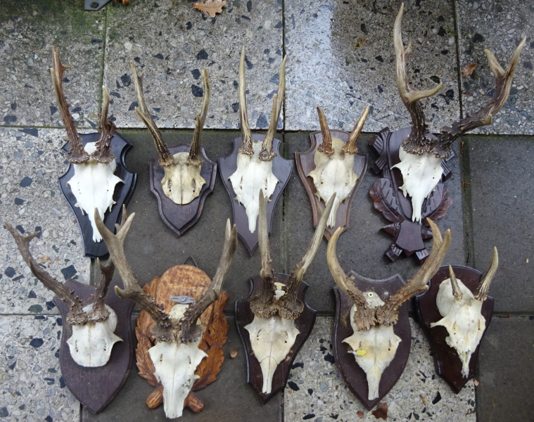 Etwas angestaubt, Lieferumfang und Zustand siehe Foto (1 Geweih müsste neu angeschraubt werden). Durch Ihr Gebot erkennen Sie an, dass es sich um eine Privatauktion ohne Rücknahme handelt. Haftung für Verlust bzw. Beschädigung der Sendung, die über das Maß der Haftung des Zustelldienstleisters hinausgehen, übernehme ich nicht. Zahlung innerhalb von 1 Woche. Versand 8,-€ versichert, nicht verhandelbar. Paypal NUR auf ANFRAGE!! Viel Glück beim Bieten!