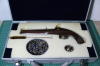 Zubehör: runde Bleigeschosse, Filzpfropfen, Zündhütchen. Die Aluminiumkiste ist nicht original. Altersfreigabe ab 18 Jahre.