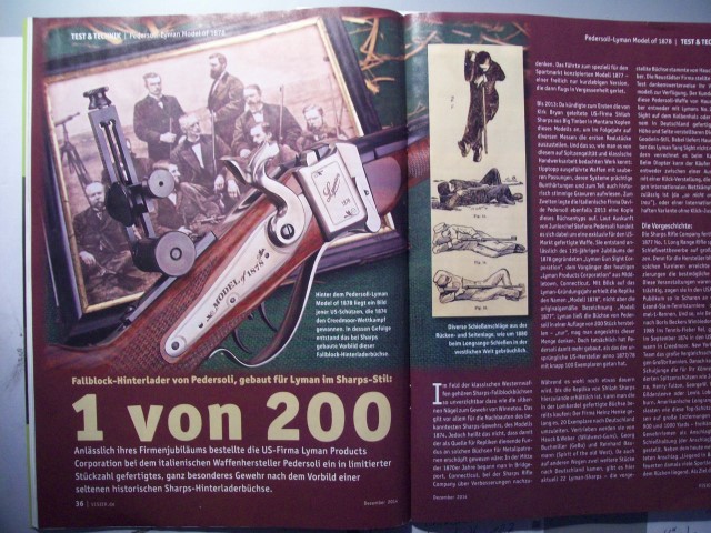 Für Waffenfreunde und Western Gewehrschützen +++ angeboten wird ein älteres Visier - Heft/SWM-Teil; mit einem sehr interessanten und ausführlichen Bericht für Westernschützen : ++ ** Blockbüchsen für Sharps Enthusiasten - Winchester M 1878 ** -- Anlässlich eines eines Firmenjubiläums bestellte die US Firma Lyman PC bei Pedersoli ein in limitierter Stückzahl ganz besonderes Gewehr nach dem Vorbild einer seltenen historischen Sharps-Hinterladerbüchse - die ** Pedersoli-Lyman M 1878 im Kaliber .45-70 Government ** -- Ein sehr interessanter Bericht (7 Seiten) mit techn. Daten und Ergebnissen auf dem Schießstand. +++ und es gibt noch weitere interessante Berichte - auch im SWM Teil - z.B. für Sammler (10 Seiten) - ** Vom Jäger zum Sammler- Zielfernrohre made in Germany **+++ Das Heft ist gebraucht ; befindet sich aber in einem sehr guten Zustand. +++ Der Versand erfolgt als Großbrief mit DHL (unversichert) ; die Versandkosten gelten nur für Deutschland.+++ Bieter aus dem Ausland bitte Versandkosten vor Gebot erfragen. +++ Versandrabatt möglich, sehen Sie auch meine anderen Angebote. +++ Privatverkauf, daher keine Gewährleistung, Garantie oder Rücknahme.***4112+++ Fragen bitte mailen.