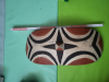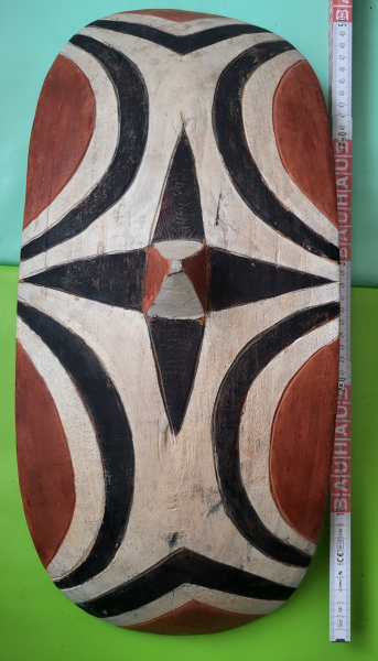 Verleihen Sie Ihrem Heim mit dem traditionellen Tutsie Schild aus Ruanda einen Hauch authentischer Dekoration. Das handgefertigte Stück zeichnet sich durch seine einzigartige, elliptische Form und die lebendigen, mehrfarbigen Muster aus, die auf einem liebevoll bemalten Holzoberfläche kunstvoll aufgebracht wurden. Mit einer Länge von 50 cm fügt es sich harmonisch in verschiedene Wohnbereiche ein und setzt ein starkes visuelles Statement im Geiste Afrikas.