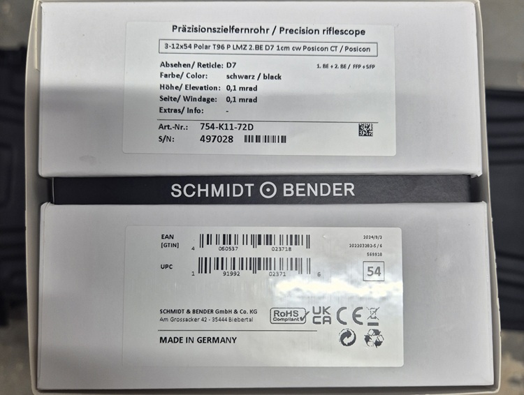Schmidt & Bender 3-12x54 Polar T96 P LMZ 2.BE D7 1cm cw Posicon CT / Posicon mit Schiene