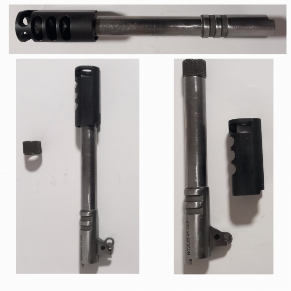 NOWLIN Matchlauf Kal 45 ACP mit Kompensator und Gewindebuchse 5.5 Zoll lang. Sehr präzise
