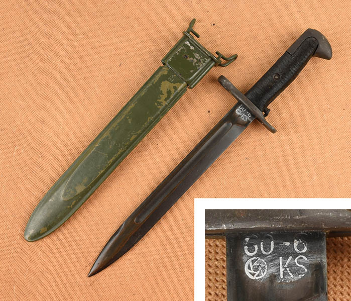 Hallo US Army Bajonett - Sammler, das hier ist eine interessante Variante des Garand Bajonetts. Das Bajonett wurde Anfang der 1950er Jahre in Taiwan (also offiziell in der Republik China) hergestellt. Die Scheiden kamen aus den USA von International Harvester aus US Produktion.
