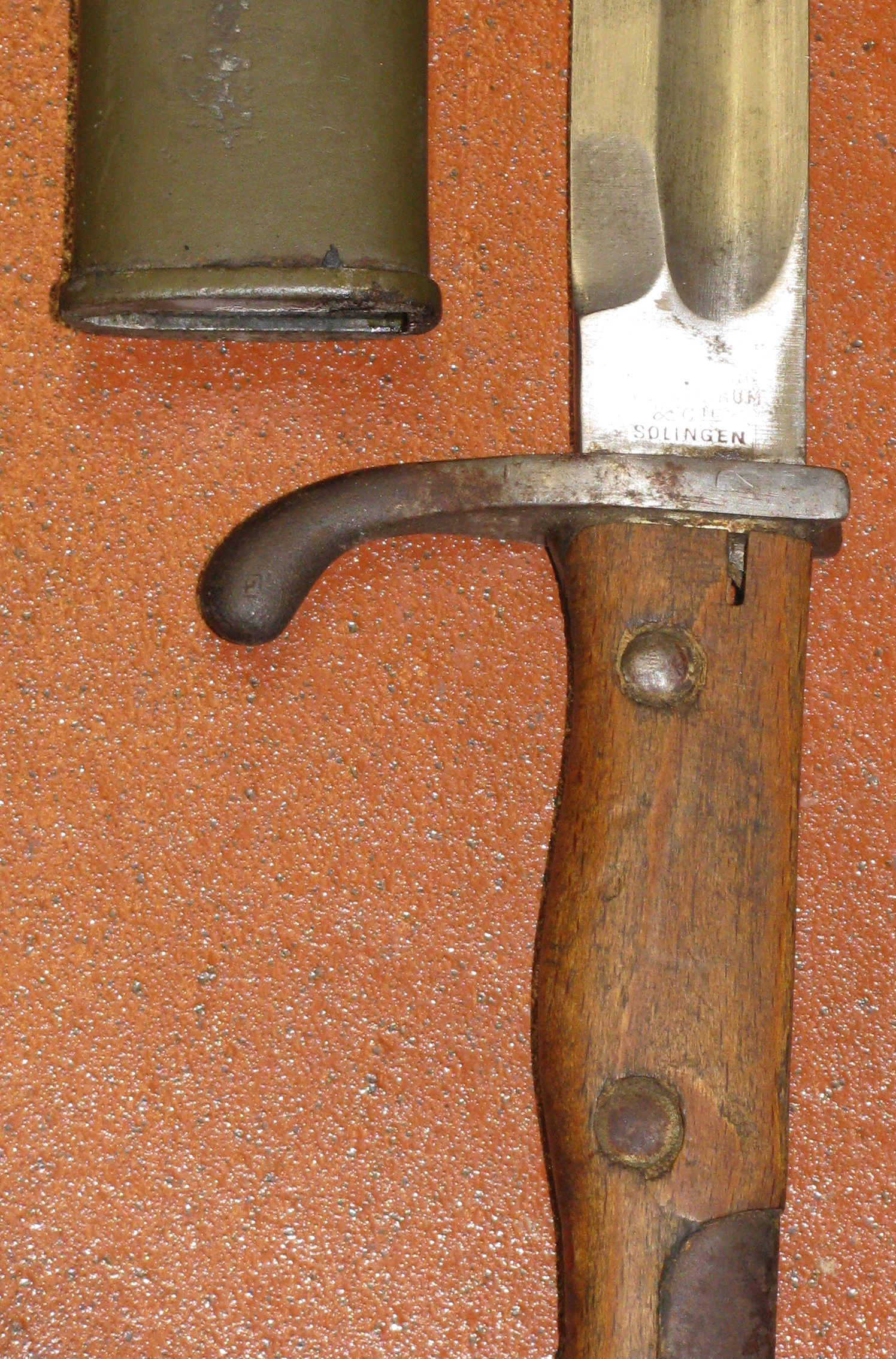 Zum Verkauf kommt ein Bajonett Deutschland, ein Bajonett 98 / 08 KIRCHBAUM ?, SOLINGEN mit Stahlscheide