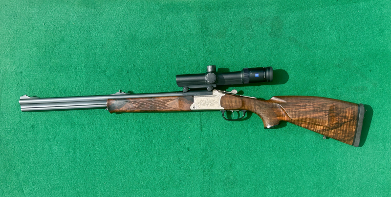 Zum Verkauf steht ein handgefertigter Doppelbüchsdrilling ATL „Prinz“, aufgebaut auf einer Blaser/Sauer-Bockbüchsflintenbasis (BBF). Die Kaliberkombination 12/76 – 8×57 IRS – 5,6×50 R Mag macht diese Waffe zu einer besonders vielseitigen und jagdpraktischen Kombination – ideal für Hoch- und Niederwild sowie für den kombinierten Einsatz auf der Pirsch oder im Ansitz.