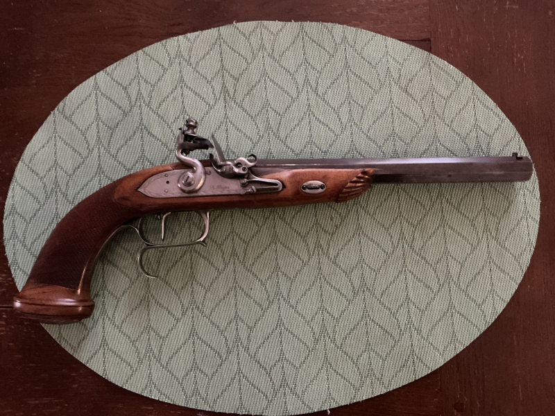 1 Le Page Steinschlosspistole kal.44 gezogen mit Zubehör siehe Foto.