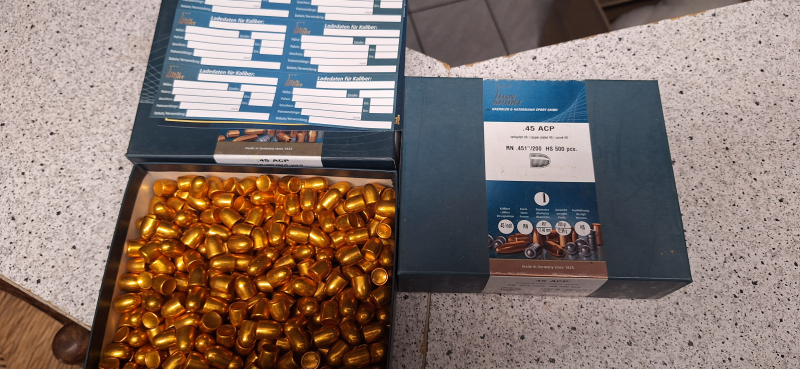 Hier verkaufe ich zwei mal 500 Geschosse 45 ACP RN 451 200 von H&N.