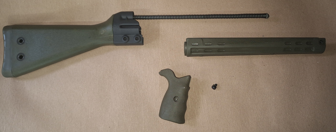 Biete Schaftset original Bundeswehr, neuwertig und unbenutzt in oliv.Eine kleine stelle an der linken Seite, roter Kreis im Bild. Bei fragen einfach schreiben