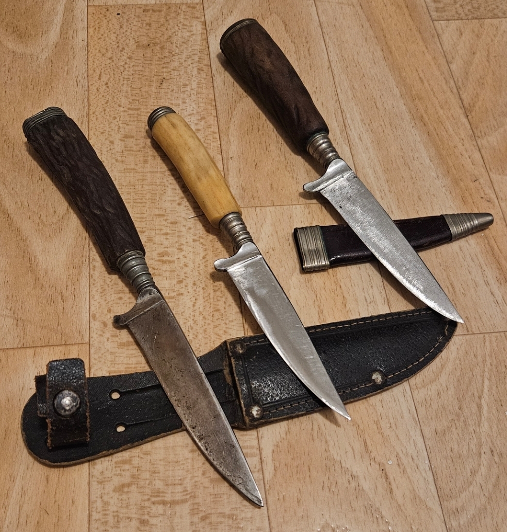Hallo liebe Eguner, zum Verkauf stehen drei schöne Jagdmesser, welche ebenfalls aus dem Nachlass des Vaters einer guten Freundin stammen. Alle drei vefügen über eine Scheide und sind in gutem Zustand. Schaut auch in meine anderen Auktionen!