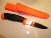 MORAKNIF, Made in Sweden, Stainless“ so auch gemarkt. Companion (S) Batch No 148888-002. Universalmesser für sämtliche Freizeit- und Berufsaktivitäten. Die Klinge ist aus spiegelpoliertem 12C27 Sandvik Stahl. Der Griff besteht aus TPE gummiertem Kunststoff und gewährleistet ein sicheres Arbeiten. Die Köcherscheide aus Polymer garantiert ein bequemes Tragen. Gesamtlänge: 22,5 cm, Klingenlänge: 10,5 cm, Klingenstärke: 2,5 mm, Grifflänge: 12,5 cm, Gewicht: 117 g.