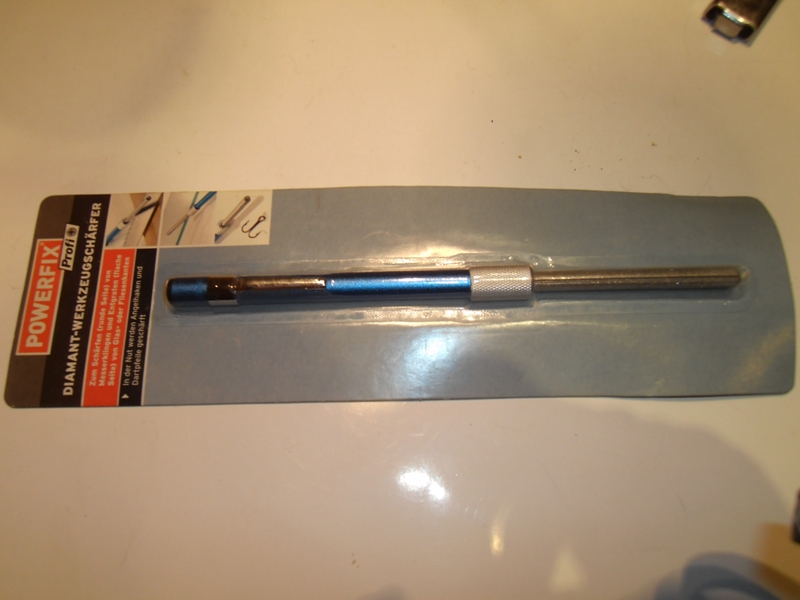NEU - Powerfix Profi Diamant- Werkzeugschärfer. Zum Schärfen (runde Seite) von Messerklingen und Entgraten (flache Seite) von Glas- oder Fliesenkanten. In der Nut werden Angelhaken und Dartpfeile geschärft. Material: Griff Aluminium. Klinge Karbon-Stahl mit Diamant-Beschichtung.