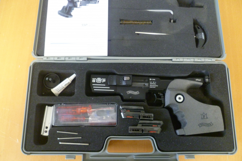 Zubehör: Originalkoffer, zwei Magazine, Laufgewicht, Werkzeug und Bedienungsanleitung