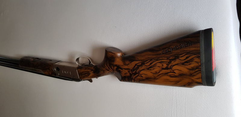 Schaftset Krieghoff K80, Normalschaft, Gewicht Hinterschaft mit Schaftschraube ca. 772 Gramm, Gewicht Vorderschaft ohne Befestigung ca. 162 Gramm, Gesamtlänge Hinterschaft, Vorderkante bis Mitte Ende der Schaftkappe ca. 41,5 cm, vom Abzug bis Mitte Ende der Schaftkappe ca. 37 cm, leider keine genaue Angabe möglich, weil keine K80 mehr vorhanden. Bemerkung: Das Schaftset soll von einem italienischen Airbrush Künstler lackiert worden sein, das bedeutet; der Schaft ist lackiert, NICHT Natur! Sieht Super aus, befindet sich in einem sehr guten Zustand und ist etwas besonderes für Kenner und Liebhaber der K80.