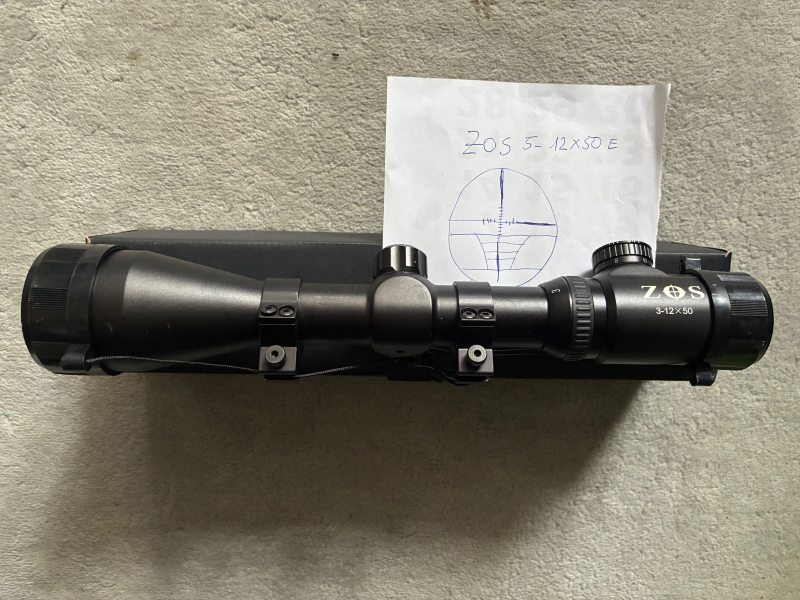 ZOS-Zielfernrohr 3-12 x 50 E, beleuchtetes Absehen lt. Zeichnung inkl. 2 Montageringe für 11 mm Schiene und Knopfzelle, im Bestzustand - so gut wie neuwertig.