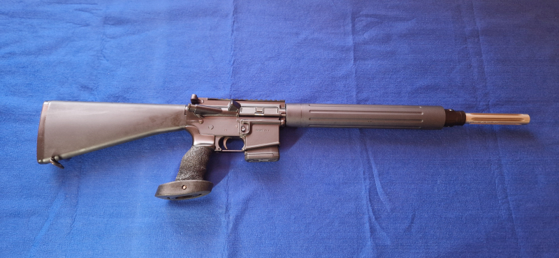 Es handelt sich um ein DPMS AR-15, das damals von Oberland Arms unter dem Namen OA-15 vertrieben wurde, aber mit den jetzigen Gewehren nichts mehr zu tun hat. Es besitzt einen ausgezeichneten, schweren 20-Zoll-Matchlauf im Kaliber .223 Remington mit enormen Potential! Ich habe früher problemlos Schussgruppen unter 50 mm auf 100 Meter produziert - teilweise mit Matchmunition noch besser. Die gesamte Schussleistung beläuft sich auf ca. 400-500 Schuss, weil das Gewehr seit vielen Jahren eigentlich nur noch im Schrank stand. Gut geölt natürlich ;-) Mit dabei ist ein Magazin, aber es können problemlos alle AR-15-Magazine verwendet werden. Montiert ist eine 20mm-Schiene für Zielfernrohre und eine Handballenauflage. Ach ja, ein passendes Zielfernrohr mit passender Montage gibt es bei meiner anderen Auktion. Es handelt sich bei dieser Auktion um den Privatverkauf einer gebrauchten Ware ohne Rechnung und Gewährleistung! Dass alle notwendigen Unterlagen zum Erwerb und ein Kontakt zur zuständigen Behörde Voraussetzung für den Verkauf sind, ist selbstverständlich!