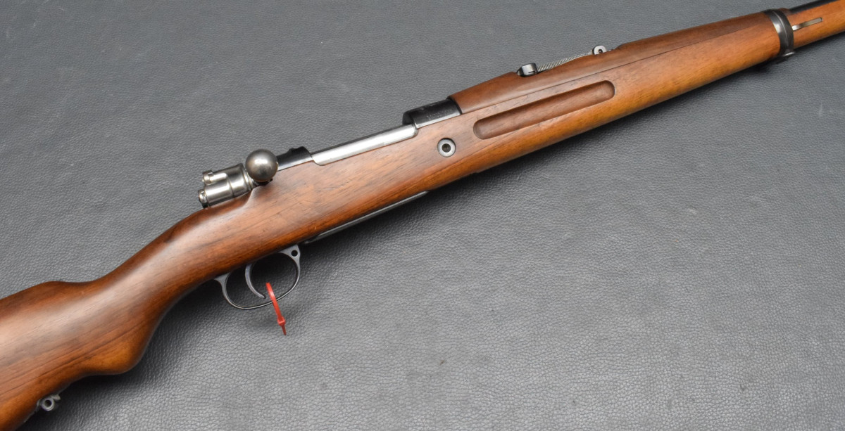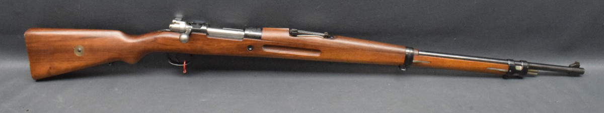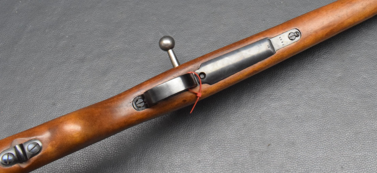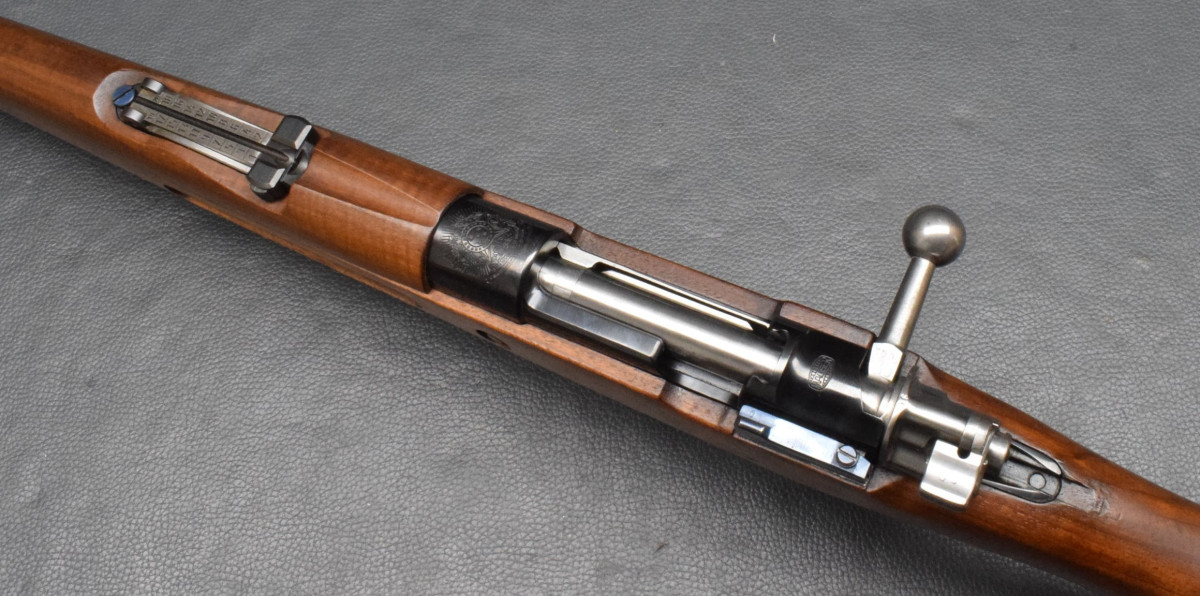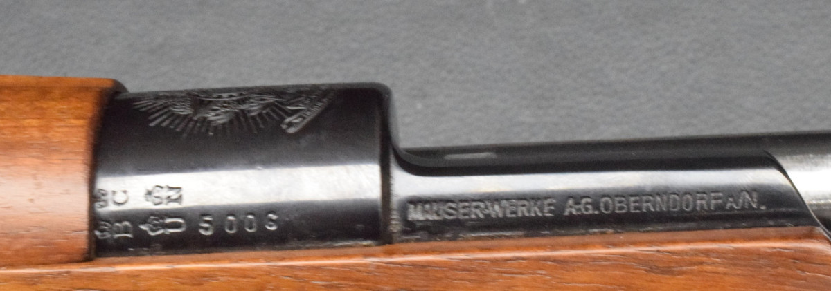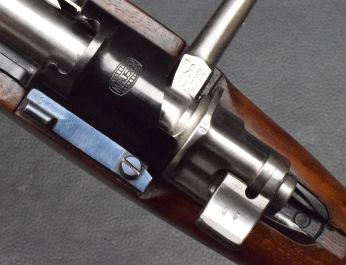 brüniertes System, Staatswappen und Mausertonne auf dem Hülsenkopf,