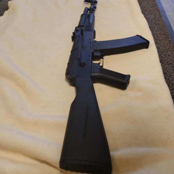 Ich verkaufe hier meine AK74 mit Festschaft in der AEG Version mit 0.5 Joule, Metallgearbox, Semi und Vollauto. Wurde vor langer Zeit bei Softairsector gekauft, Lag lange im Schrank, voll Funktonstüchtig, aber die Mundungsfeuerdämpfer ist geklebt und das Korn beschädigt... kein weiteres Zubehör mehr vorhanden. Der Verkauf erfolgt unter Ausschluss jeglicher Sachmängelhaftung, Versand ohne Inseln, Ausweißpflicht! Der Body ist aus schlagfesten ABS, Lauft ist Metall, (nicht so ein billiges China-Modell aus Plaste:-) weitere Bilder möglich, Abholung möglich...