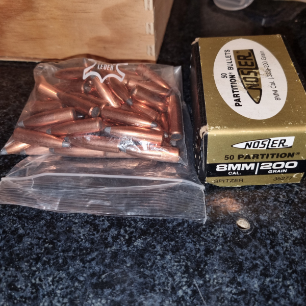 Angeboten werden nicht mehr benötigte Geschosse Nosler Partition .323 / 200 grains. 50 in Originalbox, Rest lose, insgesamt 98 Stück..