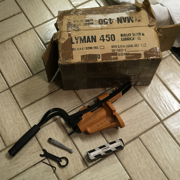 Sie bieten auf eine sehr gut erhaltene Lyman 450 mit eingebauter Kalibriermatritze in .357! Die Presse kommt mit dem abgebildeten Original-Zubehör sowie einer Stange Geschoss-Fett mit Originalkarton. Die Presse ist ein einem sehr guten Zustand.