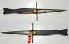 Unbekannter Dolch aus dem 18./19. Jahrhundert, einfacher dunkler Holzgriff, 12,4 cm lange Trapezklinge, Eisenteile mit Rostflecken, altersbedingter Zustand ohne Schäden