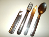 Aus den 60er Jahren: Bundeswehr Feld-Essbesteck, 4-teiliges zusammensteckbares platzsparendes Stecksystem. aus rostfreiem Edelstahl. Bestehend aus Messer, Gabel, Löffel und Spezialhalterung mit Flaschen- und Büchsenöffner. Schwere, robuste Ausführung, basierend auf dem Original der Bundeswehr. Perfekt geeignet für Camping und Outdoor, Survival und Trekking. Alle Teile gemarkt Stainless Steel Taiwan bzw. Made in Taiwan