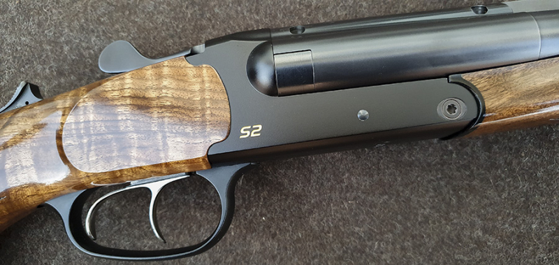Die Blaser S2 verfügt über eine Handspannung, mit der gleichzeitig beide Schlosse gespannt werden, einen sehr stabilen Kippblockverschluss und zwei Züngel, die tocken bei ca. 1200 g brechen.