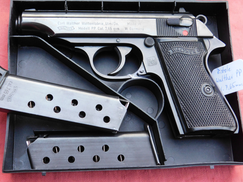 Polizei Niedersachsen Walther PP Fertigung Ulm 1975, Kal. 7,65 mm Br., Beschuss Ulm Adler N, 1975, alles noch im Originalzustand auch die Brünierung ca. 100%, mit original Verpackung (nummerngleich) und Reservemagazin. Mit neuer Tasche der Verkehrspolizei. Waffe Lauf innen spiegelblank und Profil scharf, unberührter Sammlerzustand! Ich würde sagen fast neuwertig!