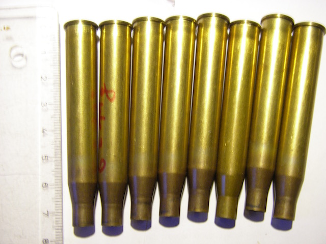 Habe aufgeräumt. Biete hier 8 Hülsen (1x als Neupatr. abgeschossen) "Cal. 7x75R Super Express vom Hofe" an.Aufschrift auf Hülsenboden: "K W.Gehmann T 7x75RSupExpr." Es handelt sich um 7 Berdanhülsen - noch nicht entzündert - sowie 1 Boxerhülse.Siehe auch Bild. Weitere Bilder per EMail möglich. Es handelt sich um ein extrem seltenes Kaliber. Habe die Hülsen irgendwann mal aus einem Wiederladenachlass bekommen;sie sind zu schade zum Wegschmeißen.