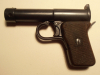 Spannen: Hebel am Griffrücken wird nach unten geschwenkt und das Griffstück abgeknickt, Kaliber: 4,5 mm, Länge: ca. 140 mm, Gewicht: ca. 430 g, Visierung: starr, Ausführung: Stahl brüniert, Holzgriffschalen