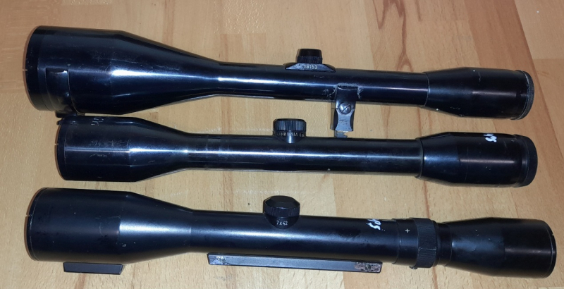 Alu Glas mit Schiene, Wetzlar 7x42, Optik scharf und ohne Kratzer, Okular läßt sich nicht bewegen, Absehenverstellung in Ordnung.