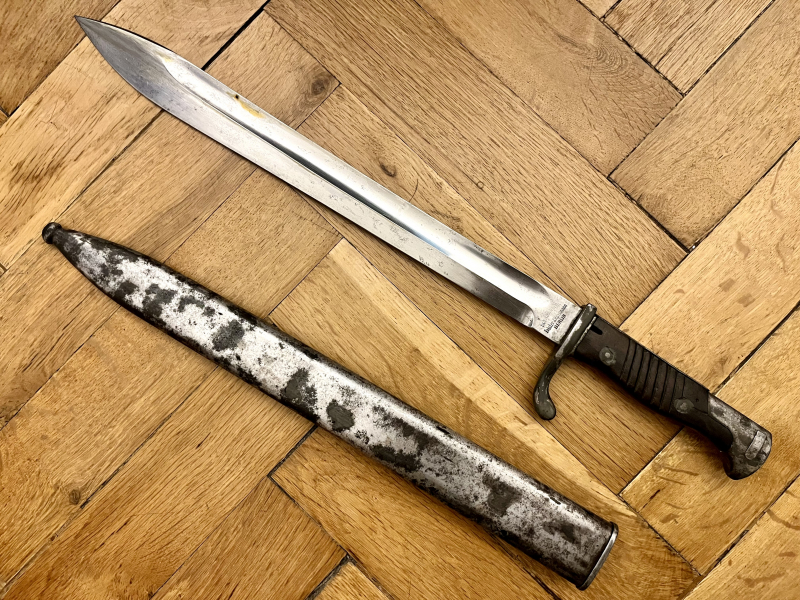Original 98/05 in gutem Zustand. Drücker gängig, zugehörige Scheide schliesst sauber ab.