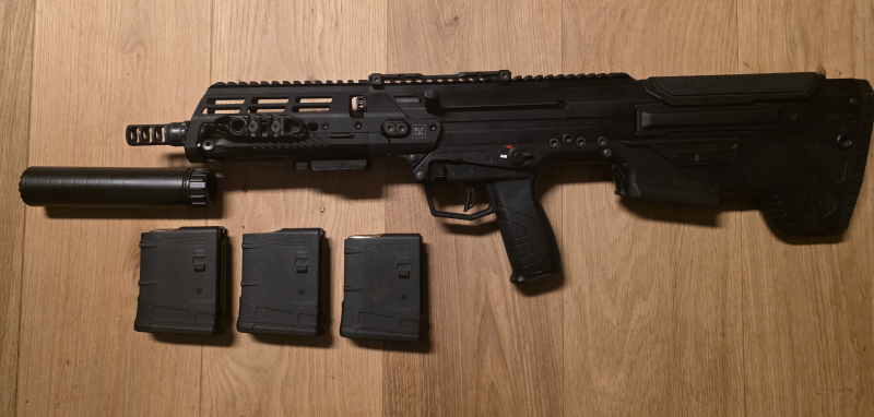Absolute Rarität!!!! Desert Tech WLVRN in 308 mit 16'' Lauf und Acheron Schalldämpfer sofort lieferbar!! Das gute Stück wurde dieses Jahr im März erworben und ist wie Neu. Dabei sind 3 Magazine a' 10 Schuss, der passende Schalldämpfer von Acheron mit HexaLug-Schnellmontagesystem, ein Black Label Handschutz mit integriertem Zweibein, und ein Sportabzug.