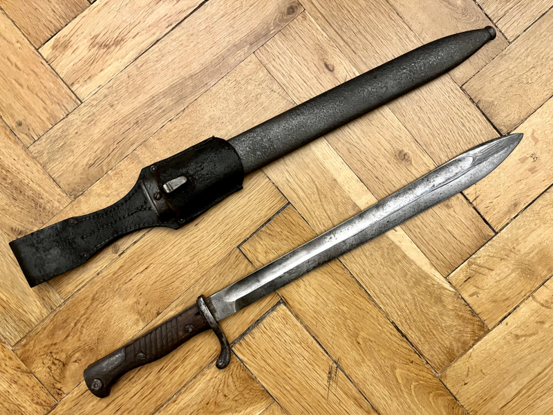 Original 98/05 in gutem Zustand. Drücker gängig, zugehörige Scheide schliesst sauber ab.