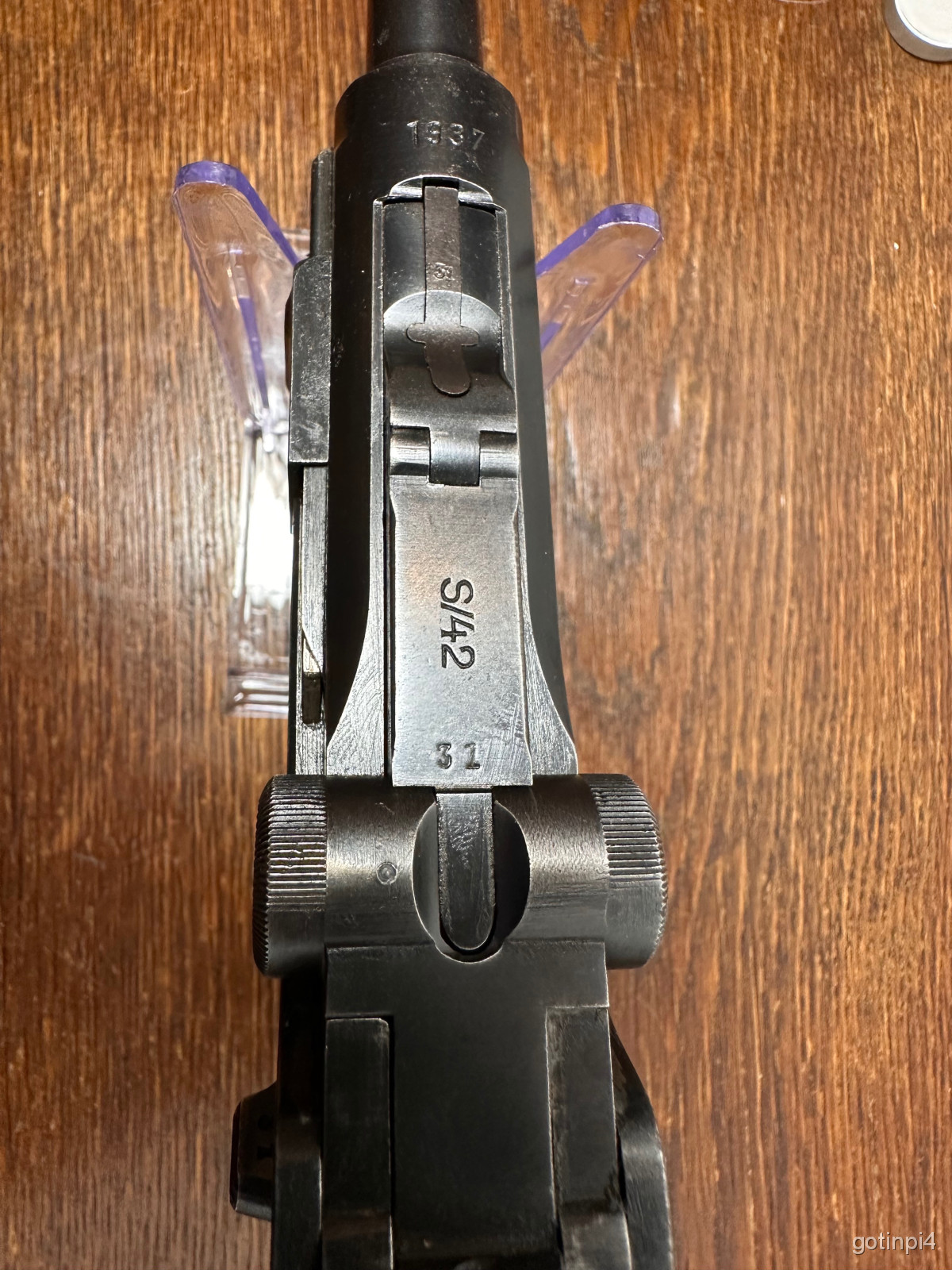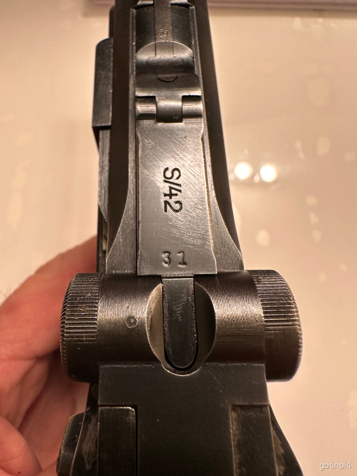 Dieses Set bietet eine seltene Gelegenheit, eine komplett nummerngleiche Mauser P08 „S/42“ von 1937 mit beiden original nummerngleichen Magazinen sowie zeitrichtigem 1937er Holster zu erwerben. Die Kombination aus Originalzustand, vollständiger Matching-Nummerierung und authentischen WaA-Stempeln macht dieses Stück zu einem hochwertigen Sammlerstück, das am Markt nur sehr selten in dieser Vollständigkeit angeboten wird. Eine hervorragende Investition – ideal für den anspruchsvollen Sammler, der Wert auf historische Authentizität und Originalität legt.