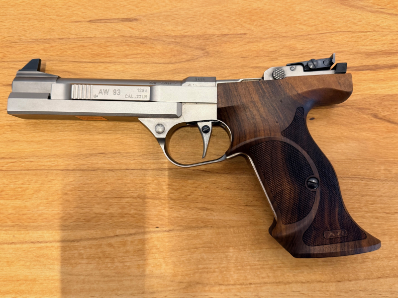 Biete Sportpistole Feinwerkbau AW 93 mit 2 Griffen.