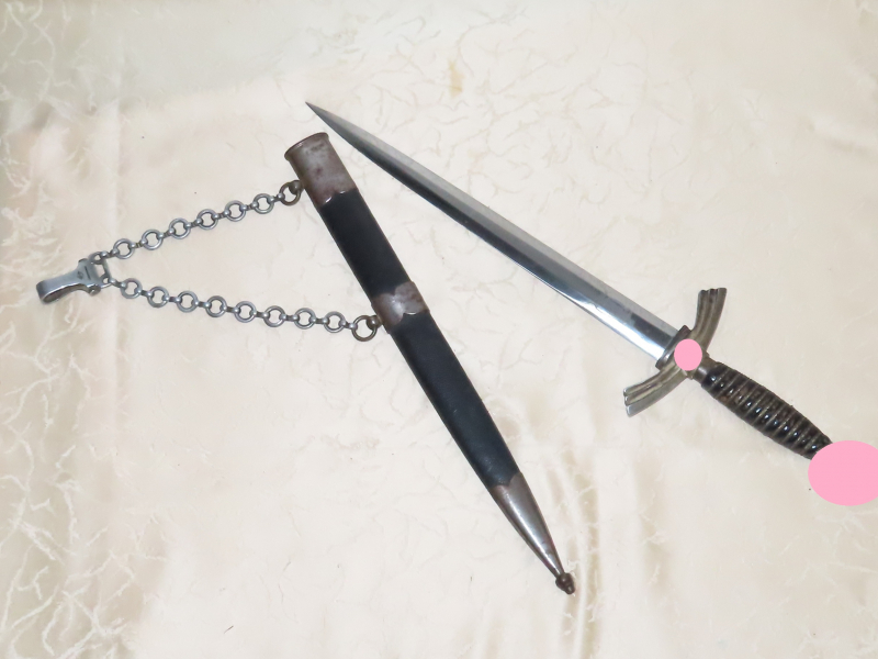Gehänge gestempelt mit OLC, Griff mit Abnutzungspuren, sehr schöner Original Luftwaffen Borddolch