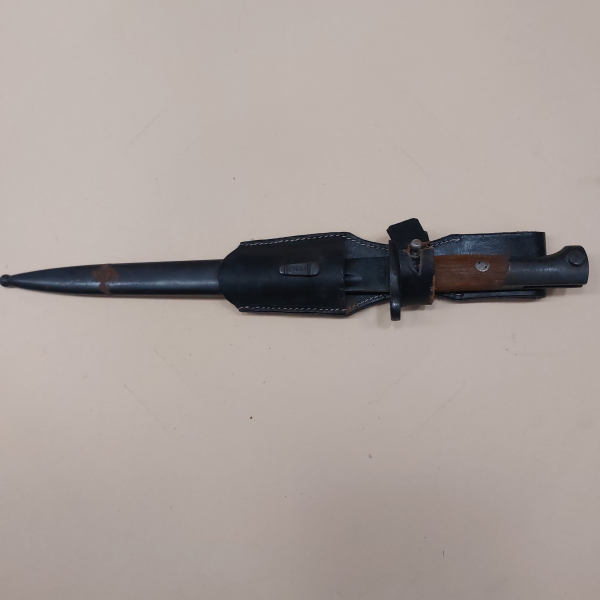 Seitengewehr Bajonett K98 1944 Jugo inkl. Scheide und Koppelschuh. Länge Gesamt: 40 cm Länge Klinge: 24,50 cm Dieses habe ich bei einer Wohnungsauflösung gefunden. Ein Bajonett aus jugoslawischer Produktion für einen K98. Der Zustand ist gut und unverändert. Ich habe das so gefunden und nicht gereinigt oder sonst was damit gemacht. Alles so wie es gefunden wurde.
