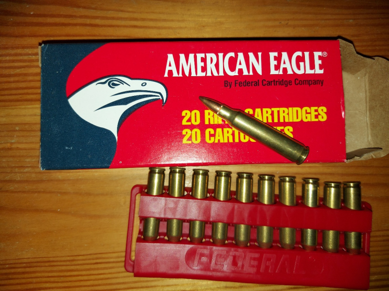Verkaufe hier wegen Kaliberaufgabe 1140 Schuß Federal American Eagle, 55gr. Vollmantel Boat Tail. Made in USA. Noch die gute alte Fertigung. Die Munition stammt aus einem Los. Die Munition ist äußerst präzise und sehr gut für Selbstlader geeignet. Versand ergolgt unter den gesetzlichen Bestimmungen mit overnight. Abholung vor Ort ist nach Absprache auch möglich. Versandkosten entfallen dann. Da Privatverkauf keine Rücknahme und Garantie.